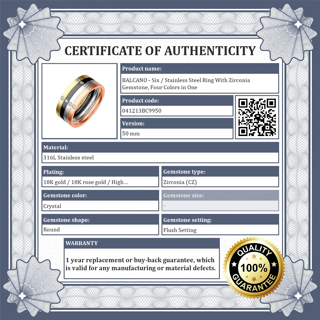 BALCANO - Six / Stainless Steel Ring With Zirconia Gemstone, Four Colors in One