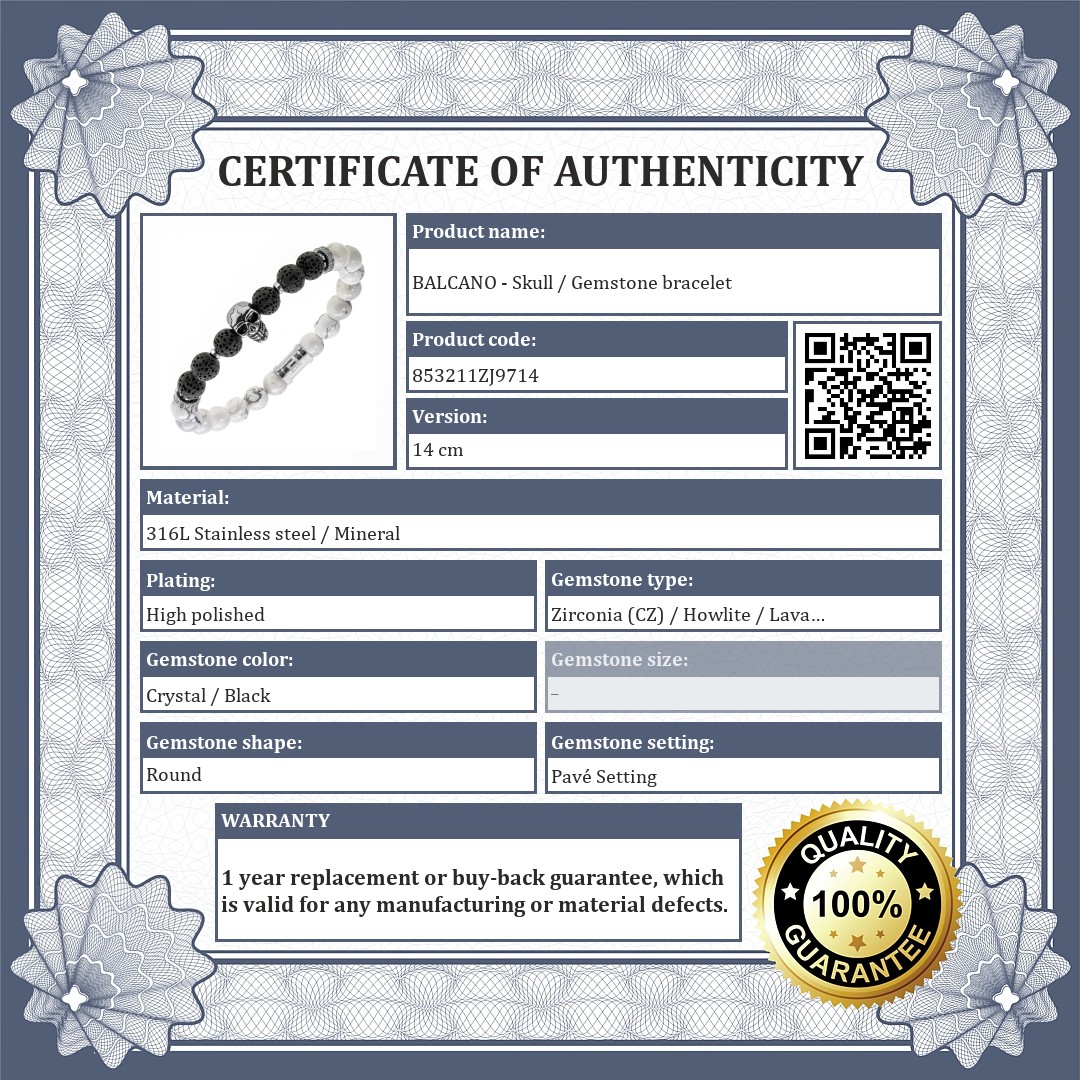 | Gemstone type: | Zirconia (CZ) (Cubic Zirconia) / Howlite / Lava Stone |