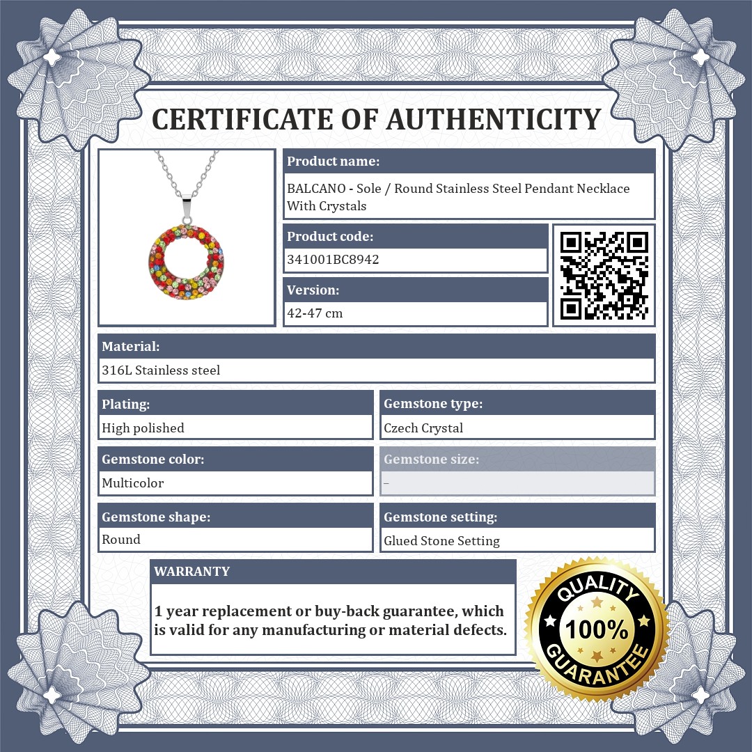 BALCANO - Sole / Round Stainless Steel Pendant Necklace With Crystals