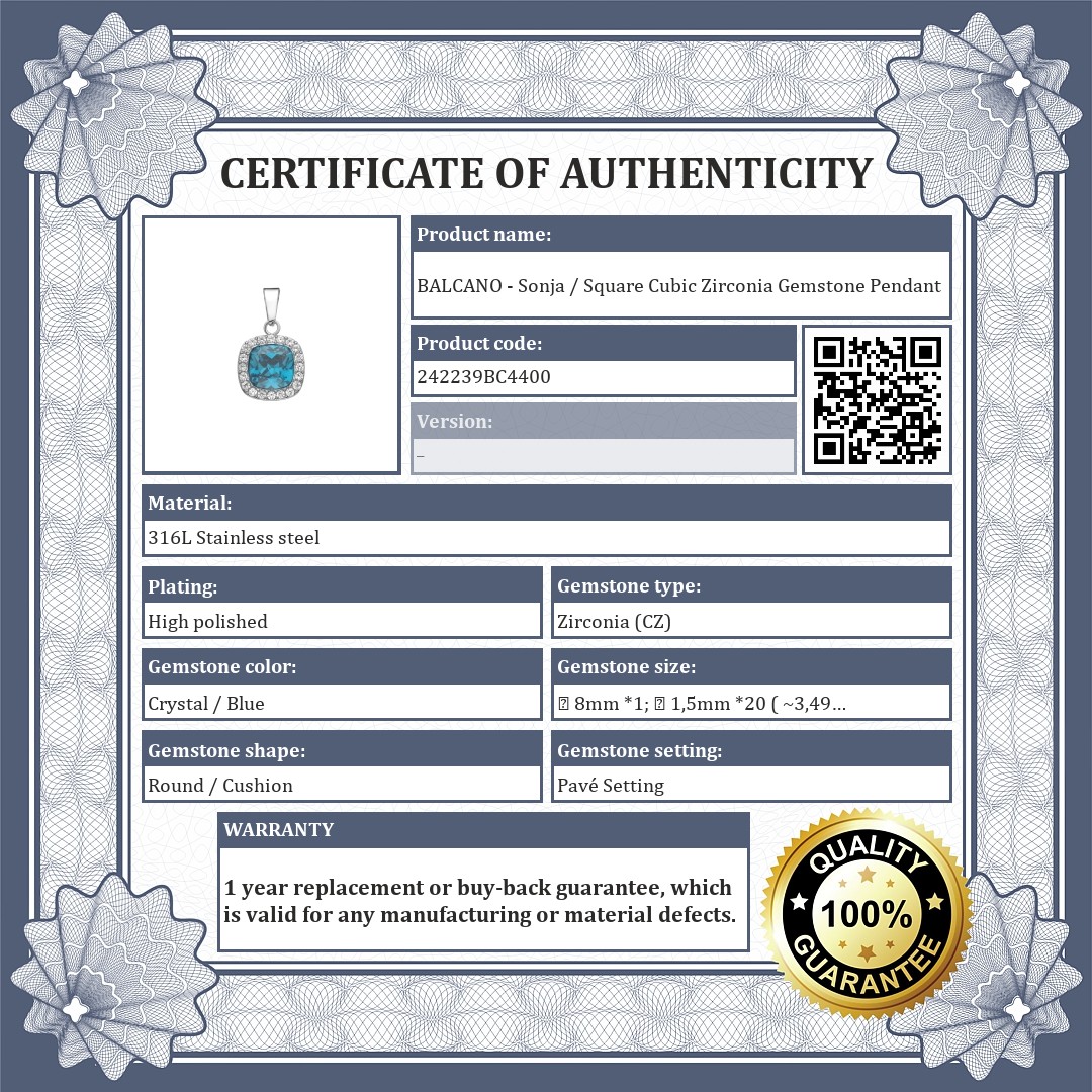 BALCANO - Sonja / Square Cubic Zirconia Gemstone Pendant