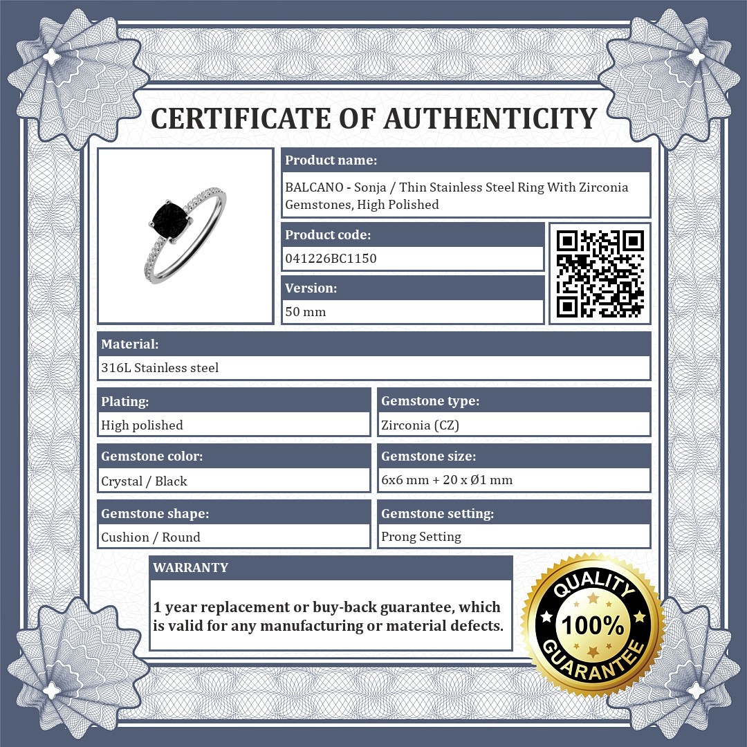 BALCANO - Sonja / Thin Stainless Steel Ring With Zirconia Gemstones, High Polished