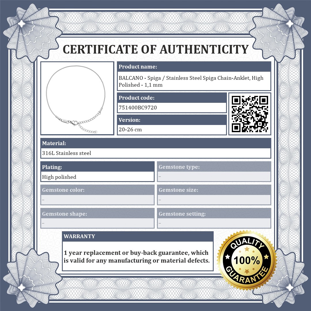 BALCANO - Spiga / Stainless Steel Spiga Chain-Anklet, High Polished - 1,1 mm