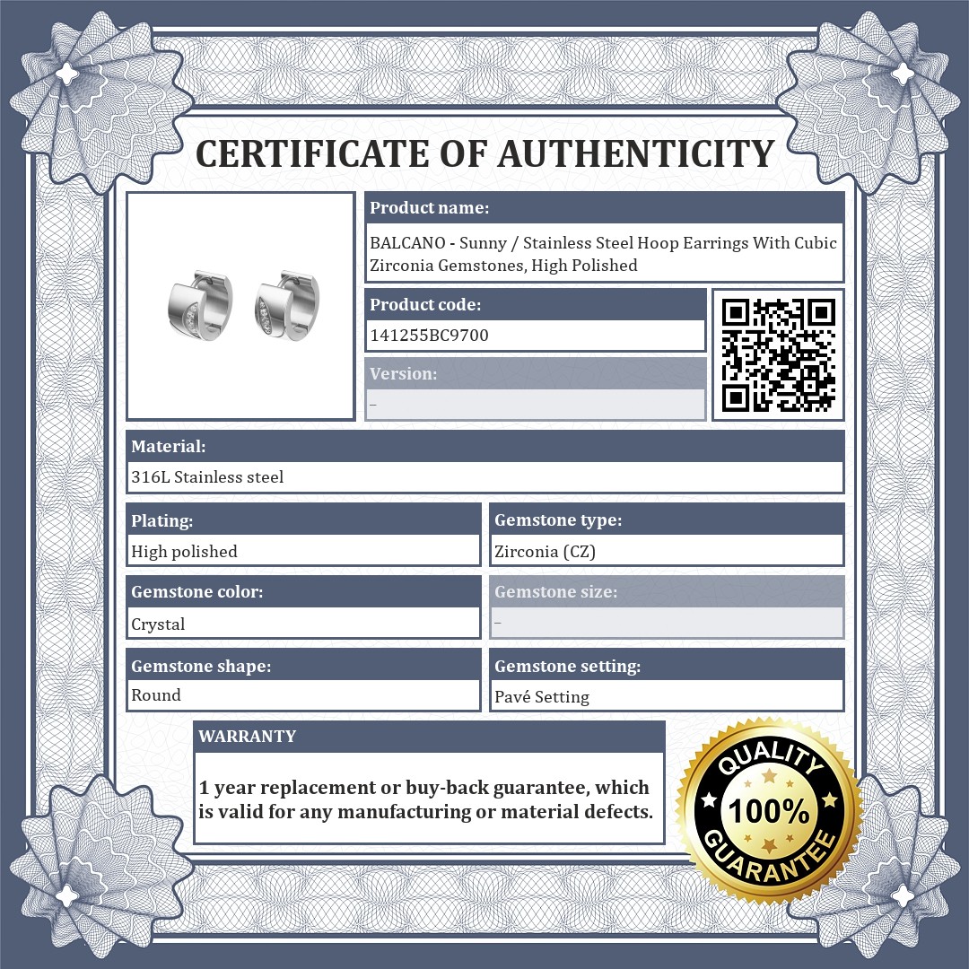 BALCANO - Sunny / Stainless Steel Hoop Earrings With Cubic Zirconia Gemstones, High Polished