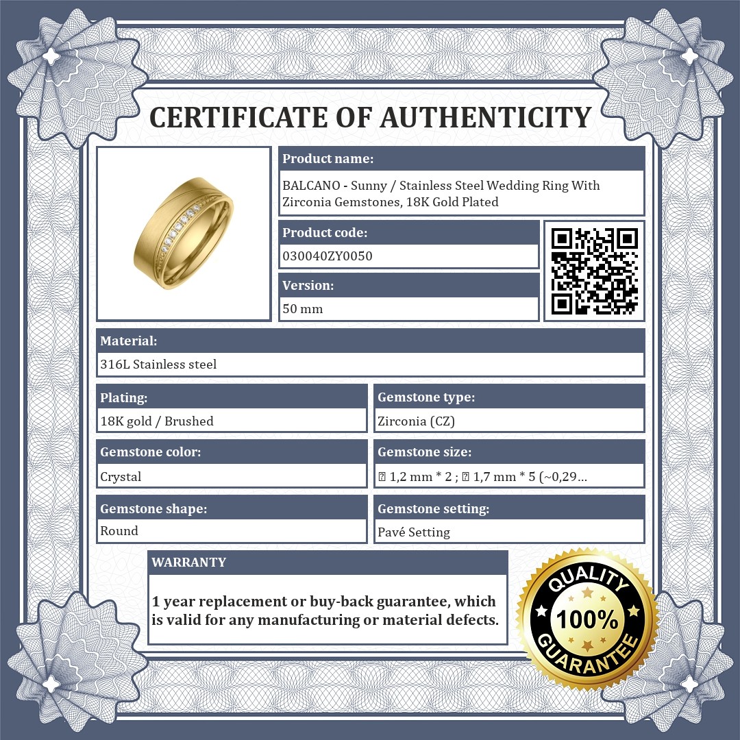 BALCANO - Sunny / Stainless Steel Wedding Ring With Zirconia Gemstones, 18K Gold Plated