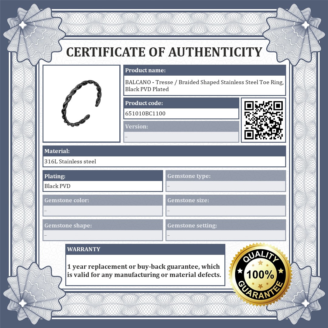 BALCANO - Tresse / Braided Shaped Stainless Steel Toe Ring, Black PVD Plated