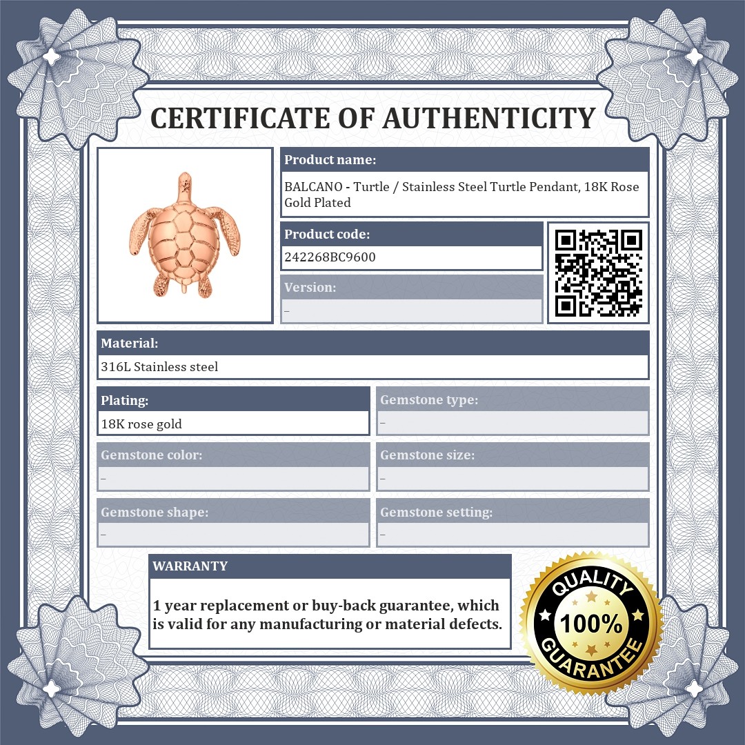 BALCANO - Turtle / Stainless Steel Turtle Pendant, 18K Rose Gold Plated
