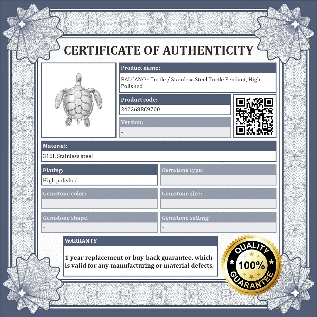 BALCANO - Turtle / Stainless Steel Turtle Pendant, High Polished