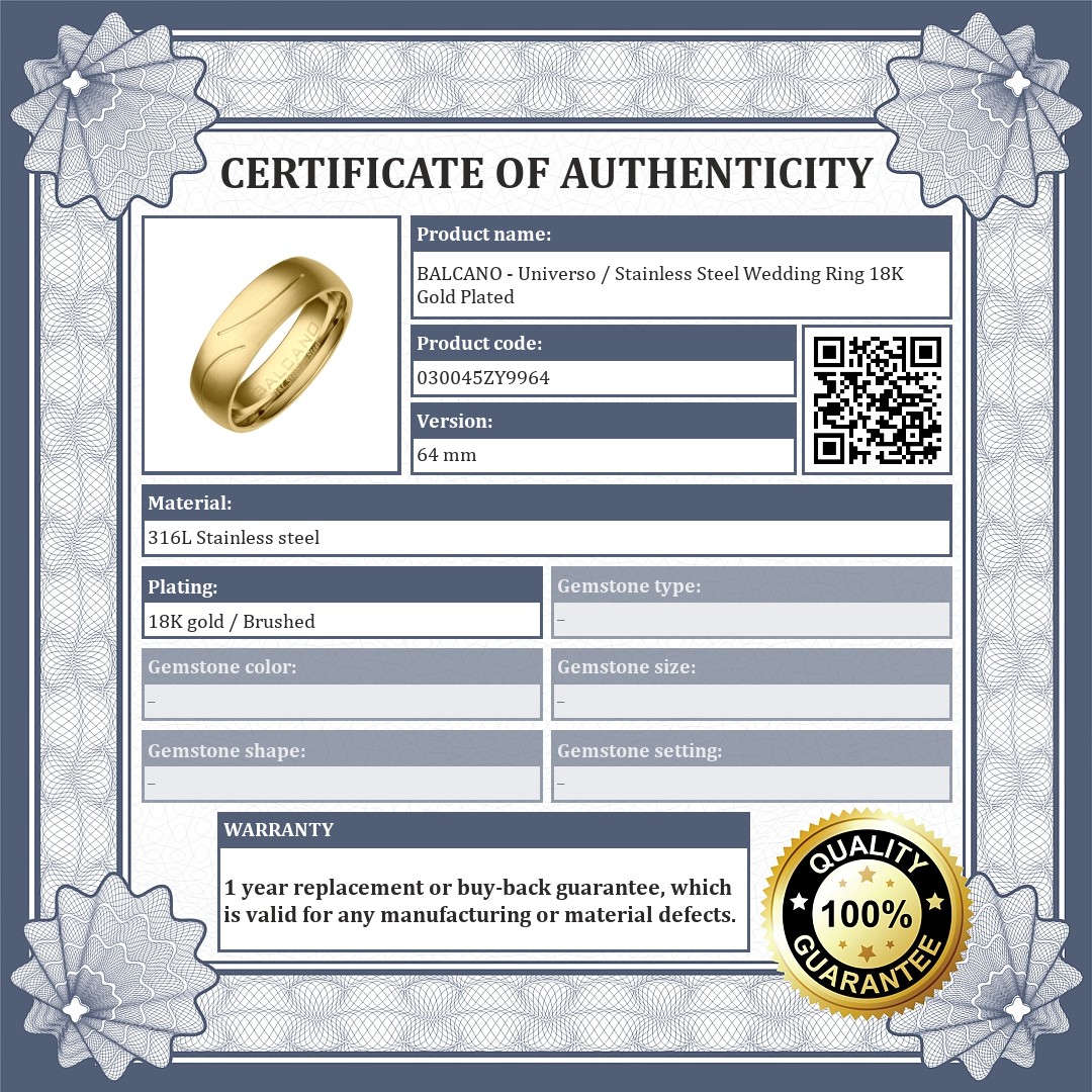 BALCANO - Universo / Stainless Steel Wedding Ring 18K Gold Plated