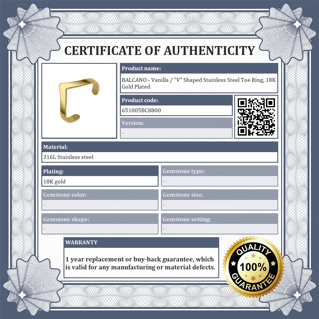 BALCANO - Vanilla / "V" Shaped Stainless Steel Toe Ring, 18K Gold Plated