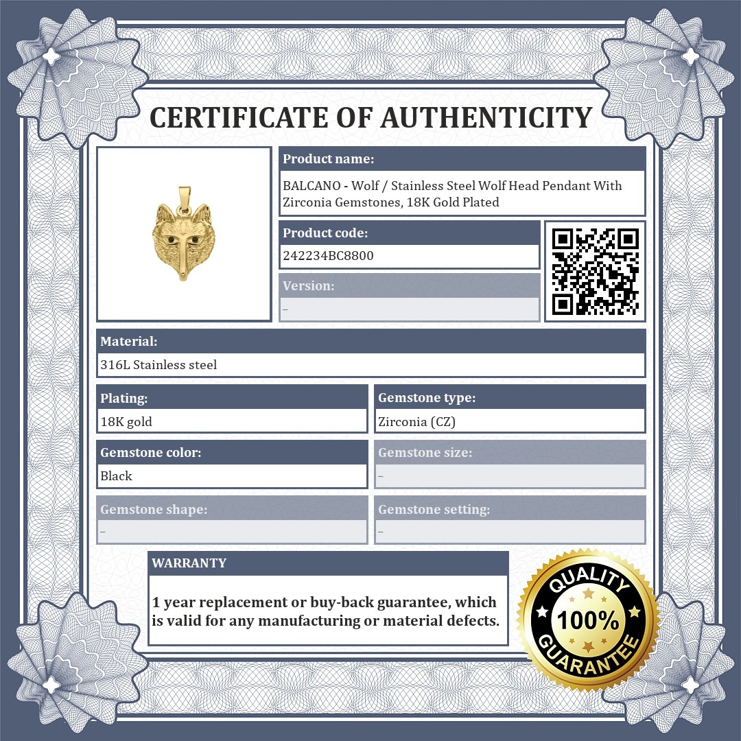 BALCANO - Wolf / Stainless Steel Wolf Head Pendant With Zirconia Gemstones, 18K Gold Plated