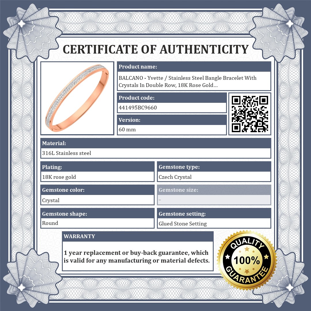BALCANO - Yvette / Stainless Steel Bangle Bracelet With Crystals In Double Row, 18K Rose Gold Plated