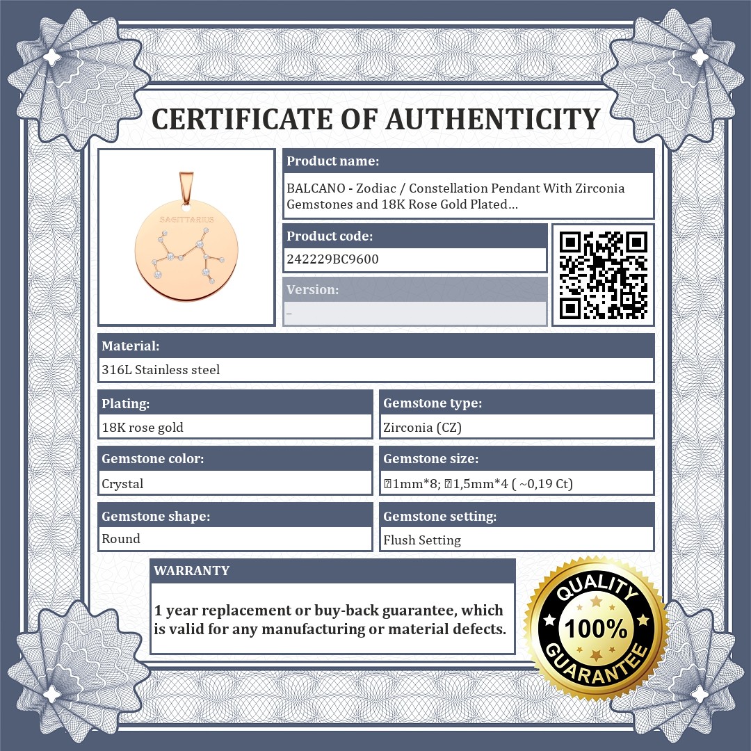 BALCANO - Zodiac / Constellation Pendant With Zirconia Gemstones and 18K Rose Gold Plated - Sagittarius