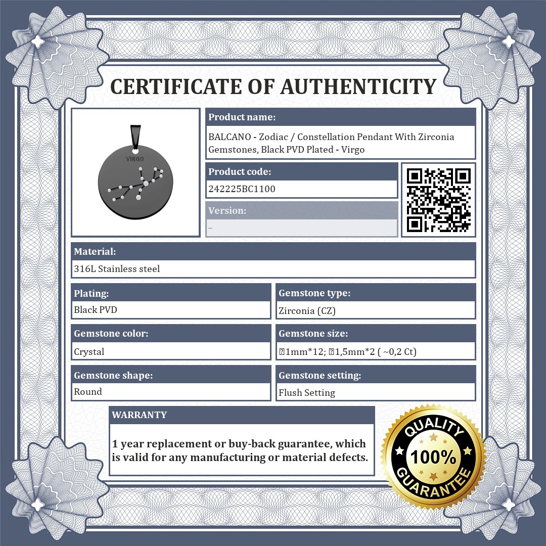BALCANO - Zodiac / Constellation Pendant With Zirconia Gemstones, Black PVD Plated - Virgo