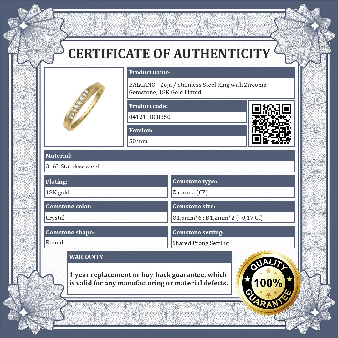 BALCANO - Zoja / Stainless Steel Ring with Zirconia Gemstone, 18K Gold Plated