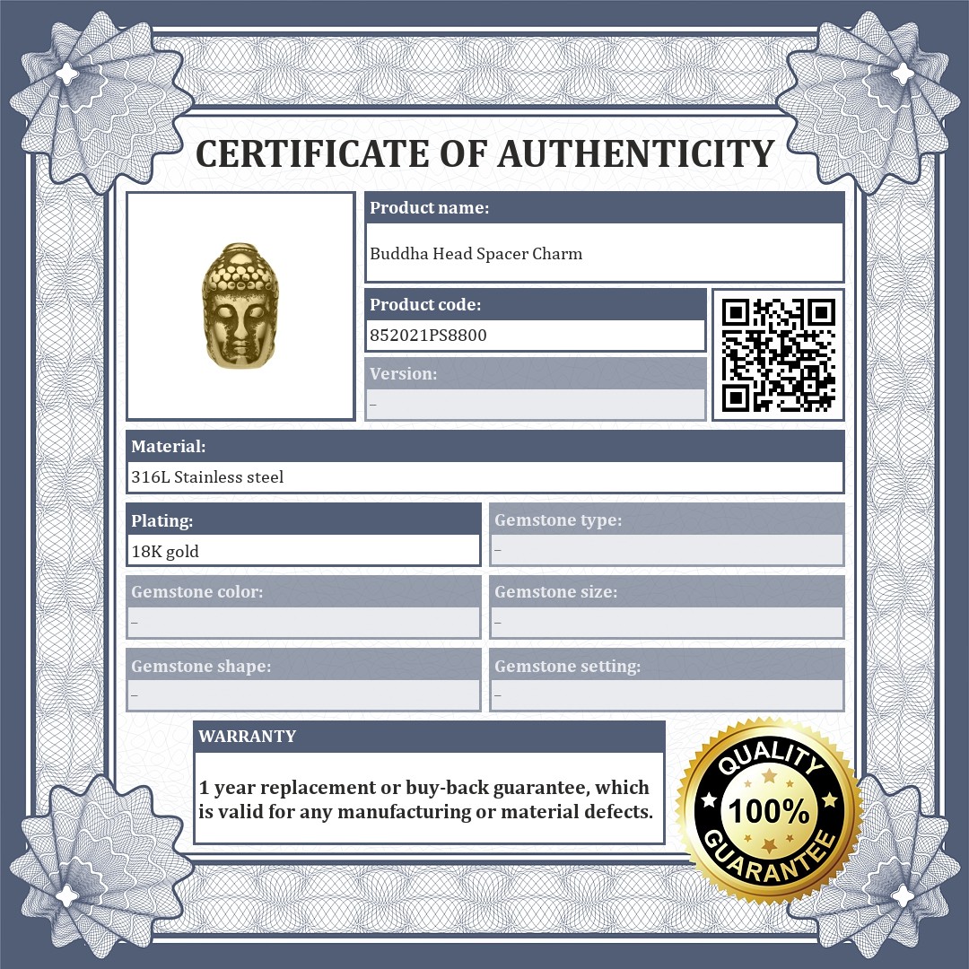 Buddha head- shaped spacer charm. Made of 316L medical stainless steel with 18K gold plated. High quality, will not wear or tarnish with use. The spacers ensure that the charms and beads do not slip off your bracelet.