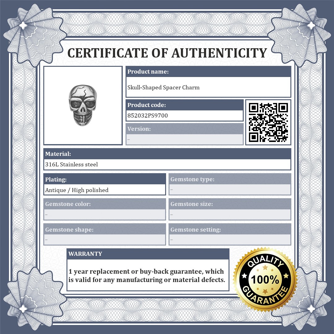 Skull shaped- spacer charm. 316L medical stainless steel accessory with special antiqued finish. The spacers ensure that charms and beads do not slip off your bracelet.